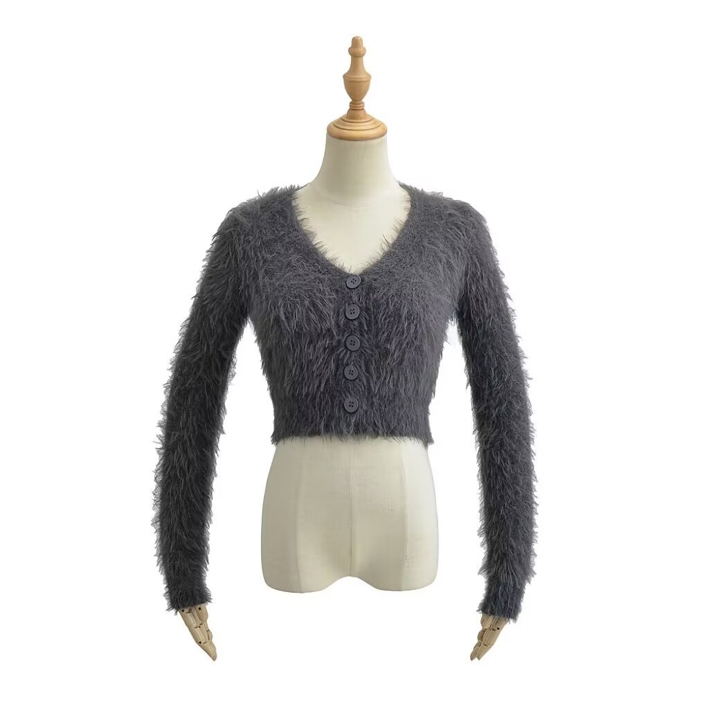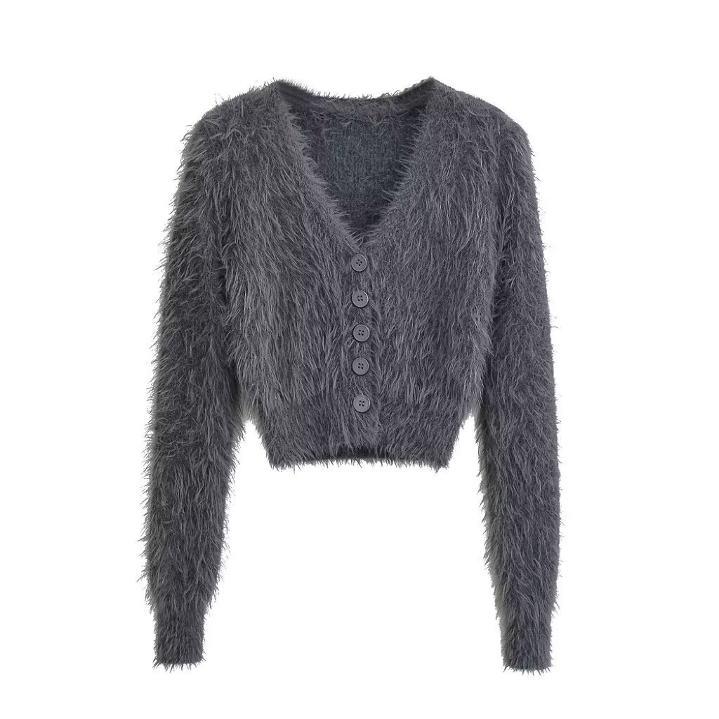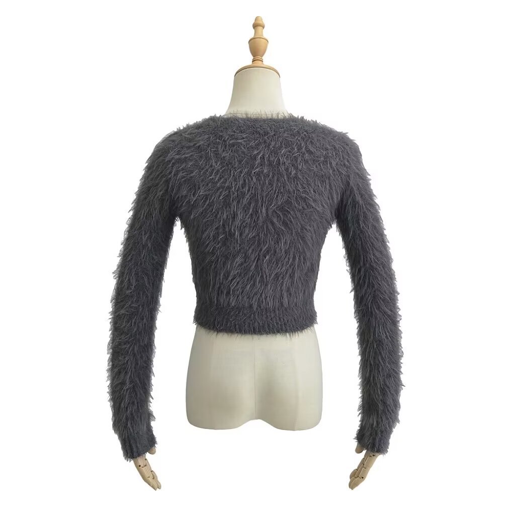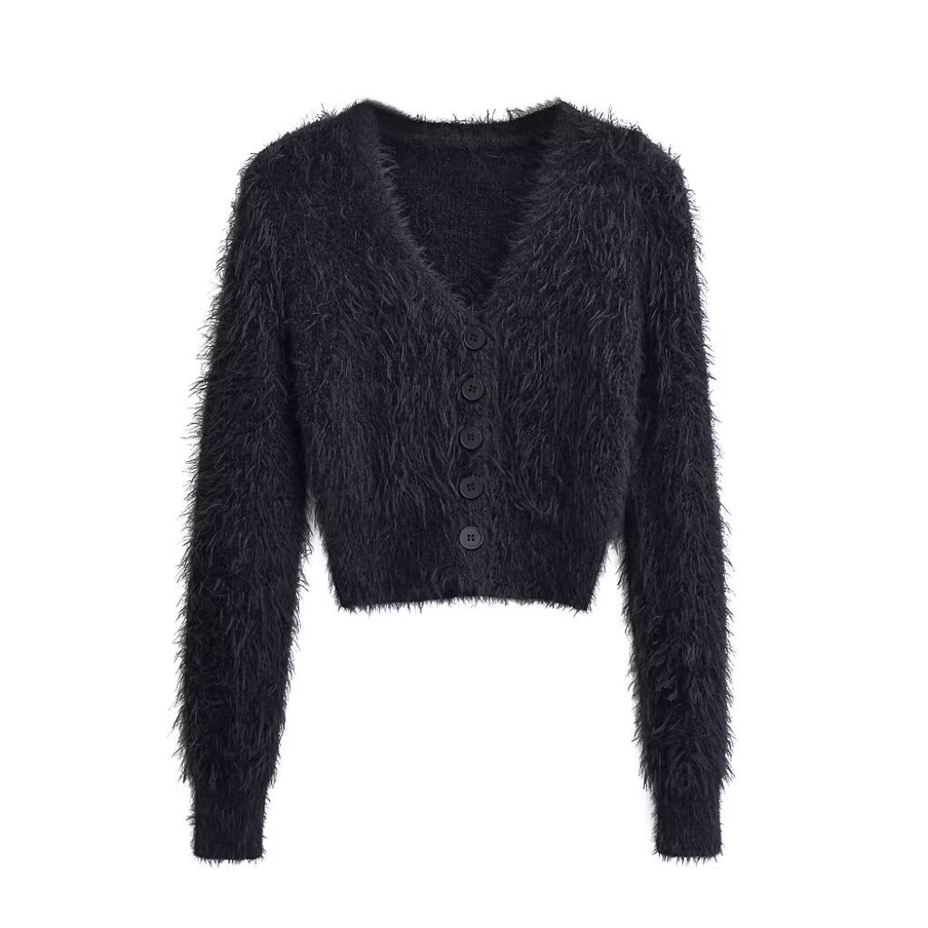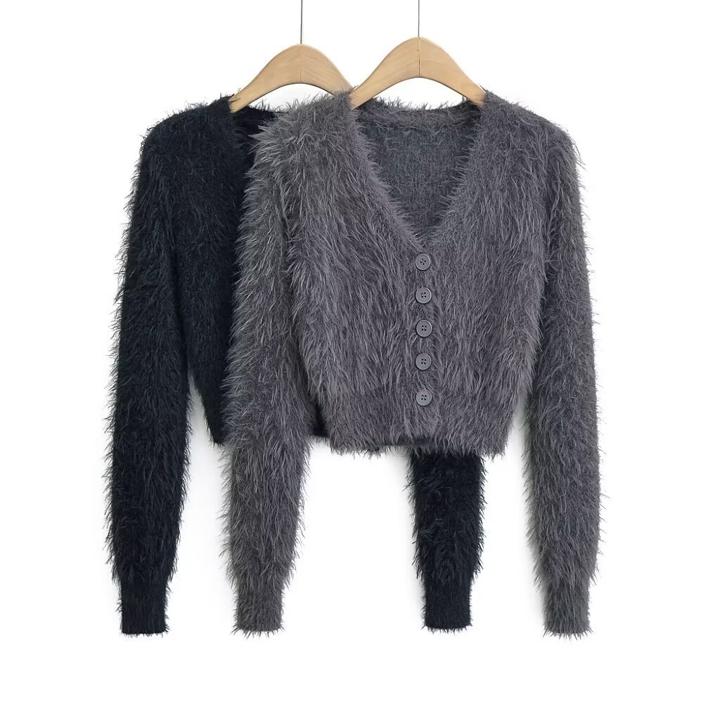 ストリートファッションに個性を添える、ファー素材が特徴的なニットカーディガンです。