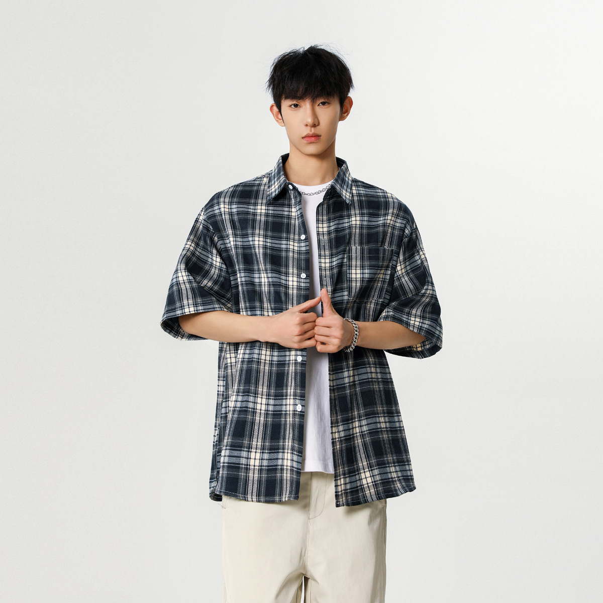 ストリートファッションに最適なチェック柄半袖シャツが登場。